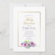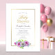 An elegant gold bordered pink and blue floral baby shower invitation.