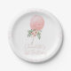 Sweet balloon first birthday paper plate for a baby girl featuring a pink balloon and floral and foliage arrangement. This design also features a modern calligraphy font used for the age and name. This baby girl's pink floral balloon first birthday invitation paper plate is a lovely decor for a girl's balloon themed first birthday party.