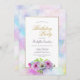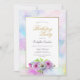 A blue and pink floral birthday party invitation featuring a gold and pastel painted watercolor border suitable for any age.