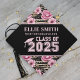 Pink Floral Black Class of 2025 Graduation Graduation Cap Topper