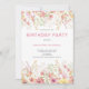 Trendy pink floral botanical birthday invitation. Easy to change the text. Pretty summer watercolor wildflower design.