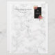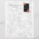 Letterhead with your monogram initial and name and business/ phone number. A black frame with a thin gold coloured border. Illustrated with flower bouquets in the corners. The flowers are pink and orange with sprigs and leaves, looking fancy and elegant. The background is a white marble image.