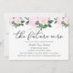 Elegant bridal shower design featuring the words "the future mrs." in a modern elegant script with beautiful pink flowers above and party details below.