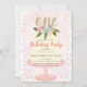 This cute and girly girl's 1st / first birthday invitation features a 3 tiered cake with flowers and leaves on a white background with blush pink watercolored brush strokes and faux gold doodled dots. The reverse side features pink background with floral patterns. Personalize for your needs. Perfect for a girly themed birthday party like princess, garden, tea-party, floral, and pink. You can find more matching products at my store.