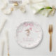 Pink Floral Coquette Bow Bunny 1st Birthday Paper Plate