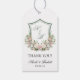 These gorgeous thank you gift tags with a watercolor crest of multi-hued pink and white flowers and greenery, the bride and groom's initials and names and their wedding date are perfect for using at your reception. They are so easy to just tie on a favour. The fonts are modern yet traditional. It is so easy to make these your own. Simply select Personalize this template, type in your initials, 1st names, and wedding date. It's that easy!