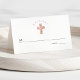 Pink Floral Cross Religious First Communion Place Card