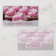 Pink Floral Cupcake Bakery business card. Cover: Pink cupcakes with white flowers in polka dot wrappers with company name. Backside: cupcake photo under transparency with company details listed. Font and colours can be customized.