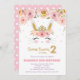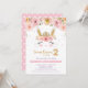 Pink Floral Cute Bunny Rabbit 2nd Second Birthday Invitation