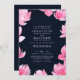 Pink Floral & Dark Navy Watercolor Wedding Invitation