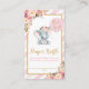 Pink Floral Elephant Baby Shower Diaper Raffle Enclosure Card