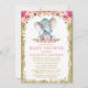 Pink Floral Elephant Baby Shower Gold Glitter Invitation