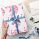 Pink Floral Elephant White Background Wrapping Paper