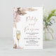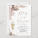 Bohemian inspired bridal shower invitation featuring a lovely dry floral and pampas grass arrangement in pink and brown. The design also includes a champagne glass and faux rose gold Petals and Prosecco heading.