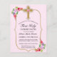 PINK FLORAL GOLD CROSS 1ST COMMUNION INVITATION POSTCARD