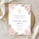 Pink Floral Gold Cross Religious First Communion Invitation