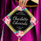 Pink Floral Gold Glitter Name Year School Graduation Cap Topper