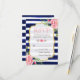 Pink Floral Gold Glitter Navy Blue Striped RSVP Card