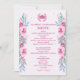 Pink Floral Graduation Dinner Menu, Personnalisez le dîner floral Menu en ajoutant le nom du diplômé et les détails du menu.