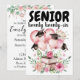 A celebratory graduation invitation featuring a mix of bold and script lettering, soft pink balloons with graduation caps, and elegant floral accents. The layout blends playful and refined elements, creating a stylish design perfect for announcing a senior‑year celebration. The back includes a clean, modern space for event details, making it easy to customize for any graduate.