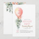 Pink Floral Greenery Balloon Girls Birthday Invitation