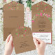 Pink Floral Greenery Light Brown Chic Wedding RSVP All In One Invitation