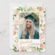 Pink Floral Greenery Script Girl Photo Graduation Announcement