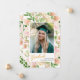 Pink Floral Greenery Script Girl Photo Graduation Announcement Card. Celebrate the grad with this modern and elegant photo graduation announcement card. All the texts are pre-arranged for you to personalize easily and quickly with your own details.
