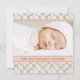 These delicate and pretty personalized photo baptism invitations with a green and white daisy floral border, pink and brown contrast stitch ribbon and a subtle damask background and a brown cross and pink heart and scrolls design makes a beautiful invite for your daughter's special day. These invitations for a baby girl are perfect for a baptism or Christening. Add your own wording and child's photo to the back of this custom card. Artwork and design © Chrissy H. Studios, LLC. All Rights Reserved.