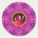 PINK FLORAL HEARTS RED RUBY GEMSTONE MONOGRAM CLASSIC ROUND STICKER