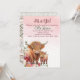Pink floral Highland cow baby shower invitation