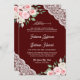 Pink Floral Lace Burgundy QR Code Muslim Wedding Invitation