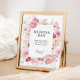 Beautiful floral mimosa bar sign featuring a rectangular frame with pink flowers.