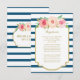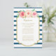 Direction card inserts for wedding in dark navy blue and white stripes pattern with gold vintage border, rustic pink watercolor flowers and handwritten style lettering. Customize these cards with your wedding directions, accommodations or other information to be included with your wedding invitations, also perfect for anniversary parties or birthday parties. Available in a wide range of matching wedding products.
