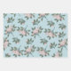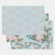 Pink Floral Pattern Elegant Blue Damask Wrapping Paper Sheet