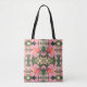 The original pink floral pattern by ZoeSPEAK on this Tote Bag was created from Zoe’s original photograph of pink jatropha flowers and buds blooming in the garden. The closeup photo shows the yellow centre of the flower amid the pink petals. The green leaves of the flower on a beige background finish the pattern.