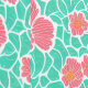 A delightful floral design featuring pink flowers with intricate line details surrounded by green leaves. The vibrant colours and repeating pattern create a fresh, lively look, perfect for spring or summer-themed projects.