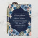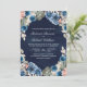 Pink Floral Photo QR Code Dark Blue Wedding Invitation