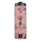 This modern Pink Floral Queen Bee & Gold Crown Monogram Thermal Tumbler features a pattern of hand-drawn Queen Bee with a royal gold crown and floral accents of exotic flowers and wildflowers by Nathalie Portet. Personalize with your monogram for a custom design. Keeps beverages hot or cold while adding a regal, elegant touch.
