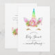 Rainbow floral unicorn shower invitation card customizable to your event specifics.
