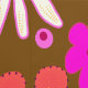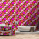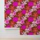 Bold, floral seamless pattern wallpaper to peel and stick. Retro flowers pattern in pink, orange and off-white printed over an earthy, chocolate brown color..