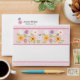 This cute envelope features a pretty floral pattern with rickrack on the front, pink stripes on the inside flap, a cute flower and bird on the back flap, and a personalized name and return address. This design is simple and feminine, and it will be perfect for birthday party invitations, baby showers, and new baby announcements. Modify the text to fit your needs.