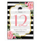 Pink Floral Striped Graduation Table Number Card.