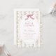 The invitation is adorned with a stunning grandmillennial floral stripe pattern of watercolor flowers in soft hues of green and light pink. At the top of the design is an enchanting illustration of a cute rose pink bow. This whimsical element adds a playful and delightful touch, embodying the joy and warmth of a tea party gathering.