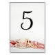 These pretty Pink Floral Tea Cup with Pearls Wedding Table Numbers add an elegant flair to the tables at your high tea theme engagement party, bridal shower or marriage reception dinner. These classy custom garden party table number cards feature a photograph of a flowery tea cup and saucer with a white pearl necklace and pink satin.
