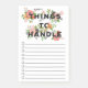 Floral to do notepad with beautiful flower arrangements adorning THINGS TO HANDLE. The post-its' to do list has check-boxes to easily see which tasks or chores you've completed. Customize by adding your name.