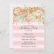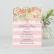 Birthday invitation with pink roses design and pink stripes watercolor background.