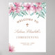 A modern spring or summer baby girl or boy Christening welcome sign poster featuring watercolor blush pink magnolia flowers, green foliage, and eucalyptus leaves and a classy handwritten style calligraphy script. +++++++++++ Easy to personalize it with your details! ++++++++++ Suitable for modern floral, outdoor garden or summer backyard elegant newborn baby baptism ceremonies and receptions.