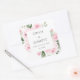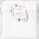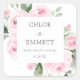 Elegant pink rose floral and sage green eucalyptus greenery square floral frame surrounds the bride and groom names, a thank you sentiment and their wedding date.