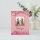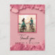 Barbiecore-inspired wedding thank you postcard featuring pink monochromatic simulated 3d effect papercut flowers with photo.
